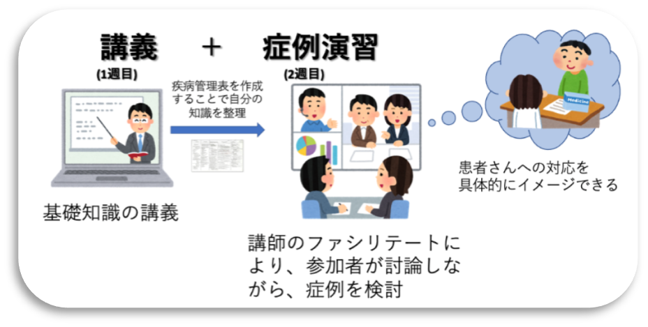2回目までに各自知識の整理をしていただき、2回目の演習では症例検討を通して